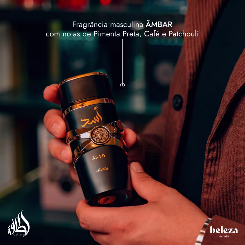 Asad é um perfume importado Lattafa masculino âmbar. Traz uma fragrância que é uma verdadeira obra-prima cheia de elegância.