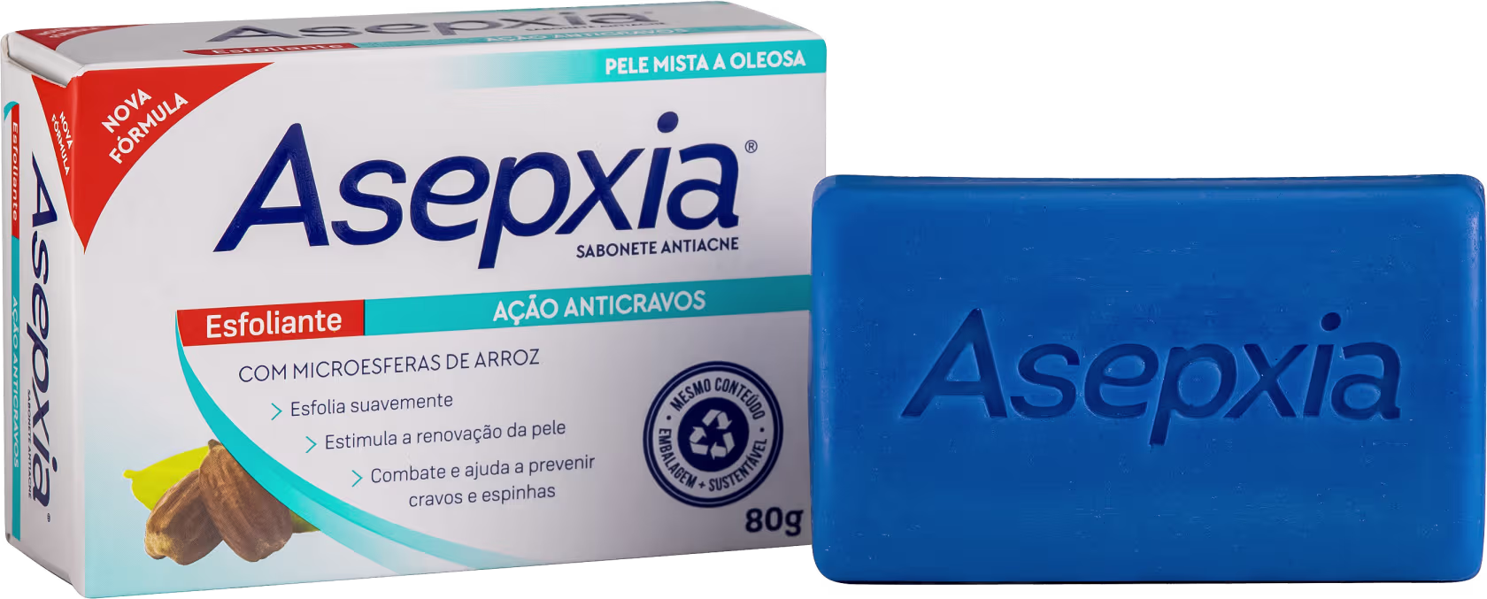 Sabonete Asepxia Ação Anticravos Esfoliante, que estimula a renovação. Melhores Esfoliantes para o rosto Asepxia na BLZ Ver mais ❯