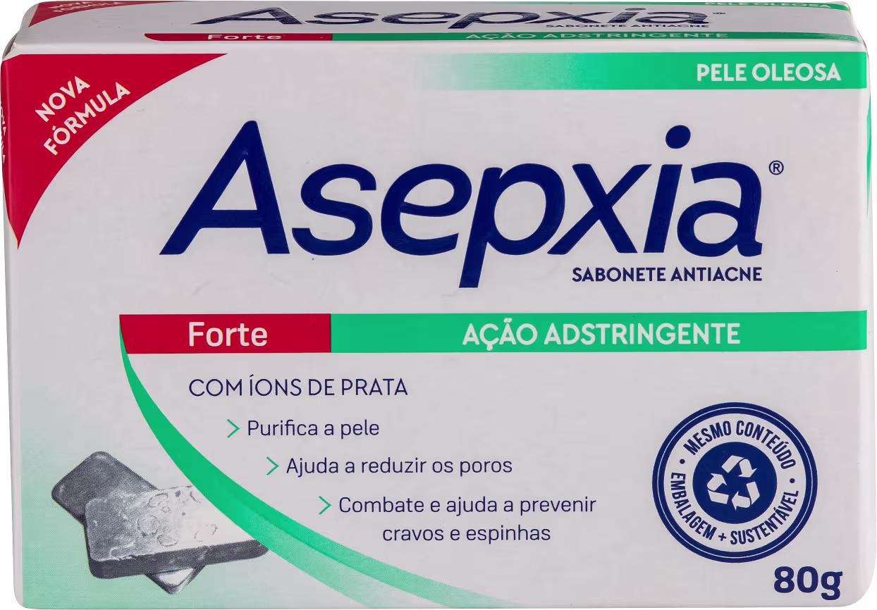 Sabonete Asepxia Forte Ação Adstringente, ajuda a desobstruir os poros. Melhores Produtos para limpeza da face Asepxia na BLZ Ver mais ❯