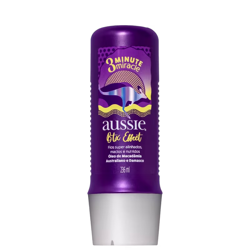 O Tratamento Aussie Btx Effect 3 Minute Miracle dá brilho, protege as pontas duplas e ainda controla a umidade, para um efeito botox capilar até a sua próxima lavagem. Ele ainda deixa o cabelo com aquele cheirinho de Aussie que todo mundo ama. Fórmula dos Estados Unidos e inspirada na Austrália, com Óleo de Macadâmia e Damasco. 100% livre de amônia, sulfato, parabenos, petrolatos e corantes.