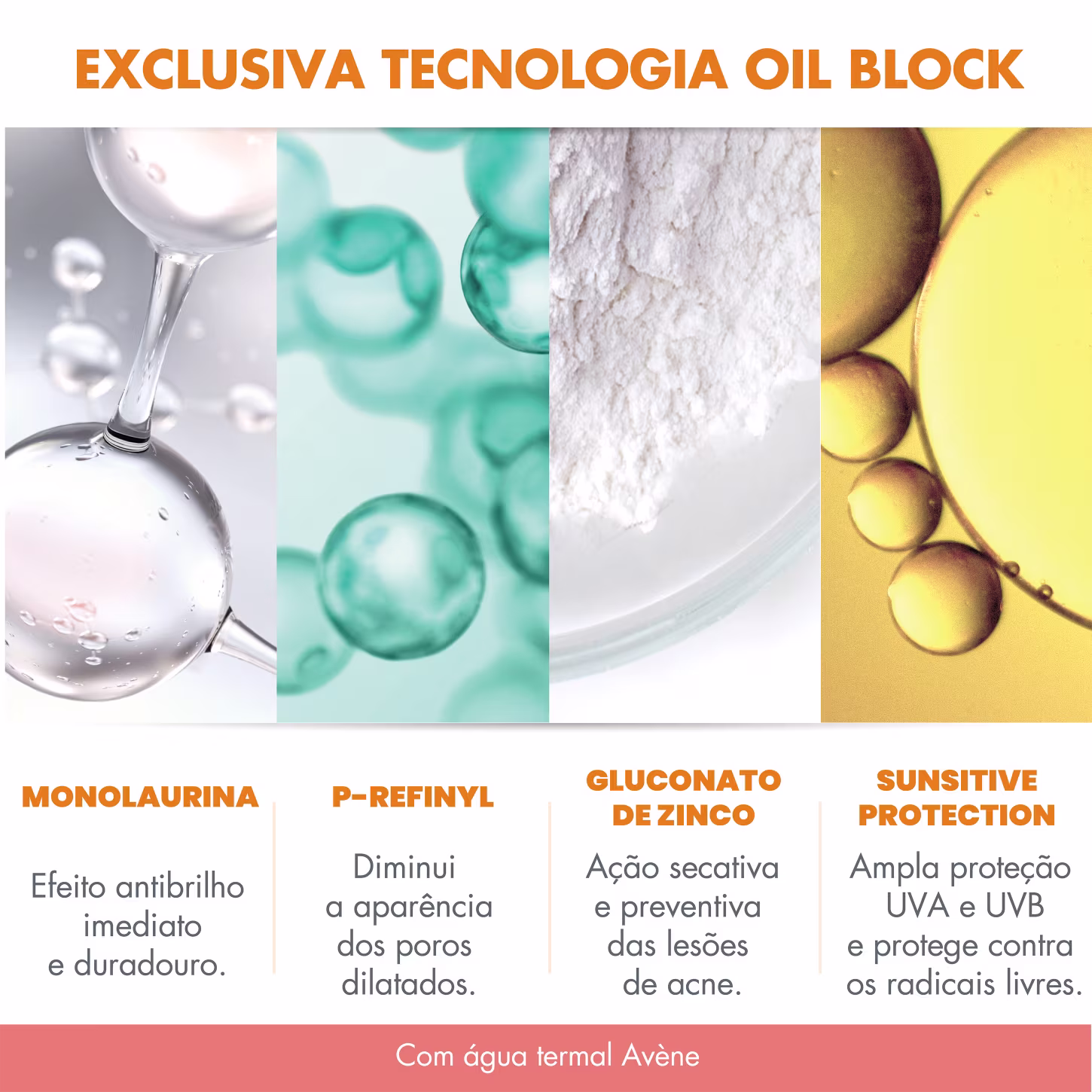 O Protetor Solar Facial Avène Cleanance UV FPS70 possui na fórmula a tecnologia Oil-block que reequilibra a derme e oferece até 14 horas com controle de oleosidade. Conta com uma textura fluida, que auxilia na diminuição da aparência dos poros dilatados e uniformiza o tom da face, com uma cobertura natural.
