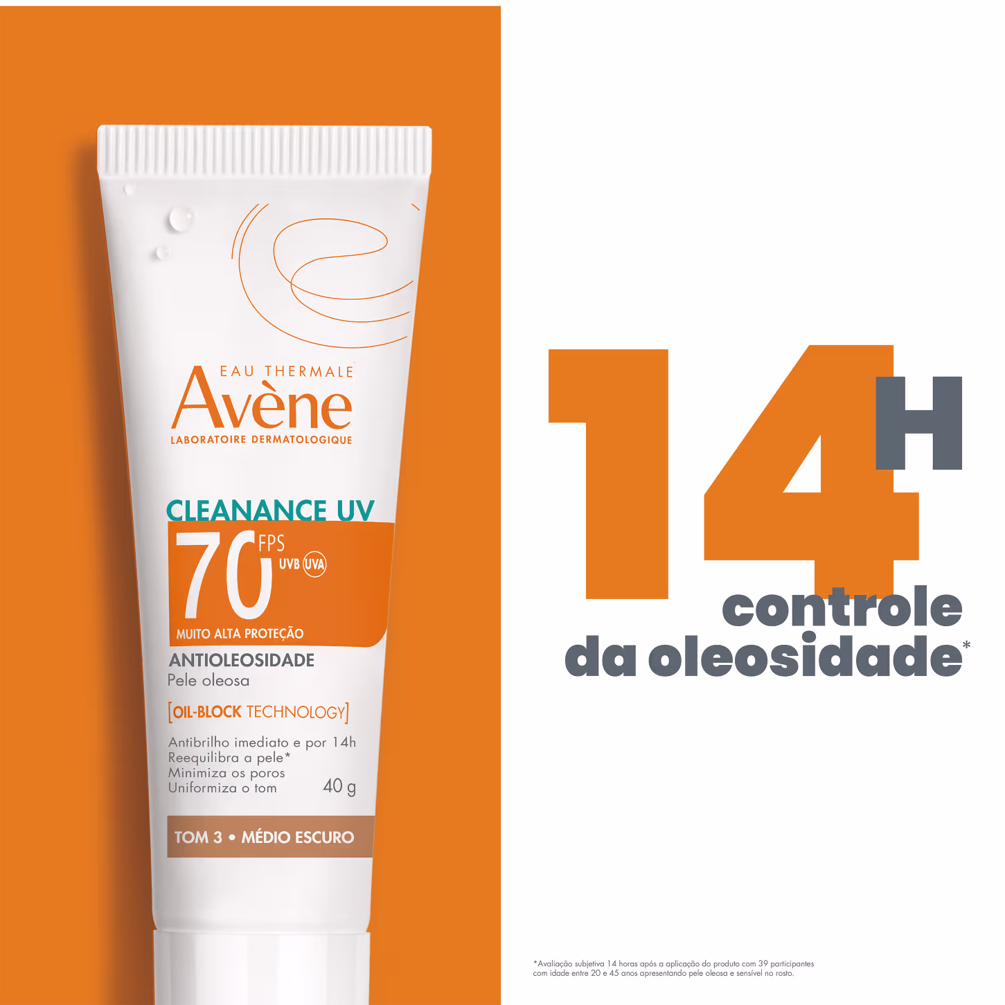 O Protetor Solar Facial Avène Cleanance UV FPS70 possui na fórmula a tecnologia Oil-block que reequilibra a derme e oferece até 14 horas com controle de oleosidade. Conta com uma textura fluida, que auxilia na diminuição da aparência dos poros dilatados e uniformiza o tom da face, com uma cobertura natural.