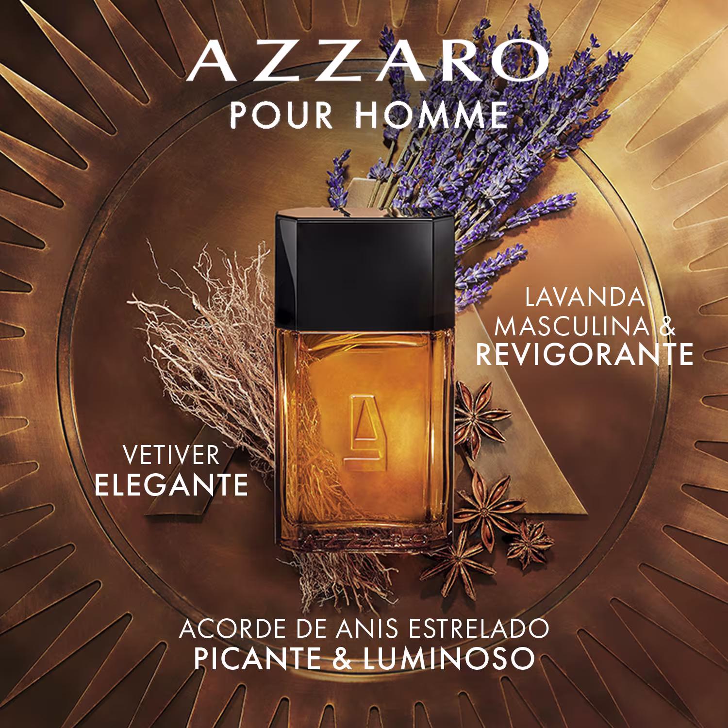 - - Frasco icônico com linhas robustas, simbolizando a força, a masculinidade e a modernidade do homem Azzaro.