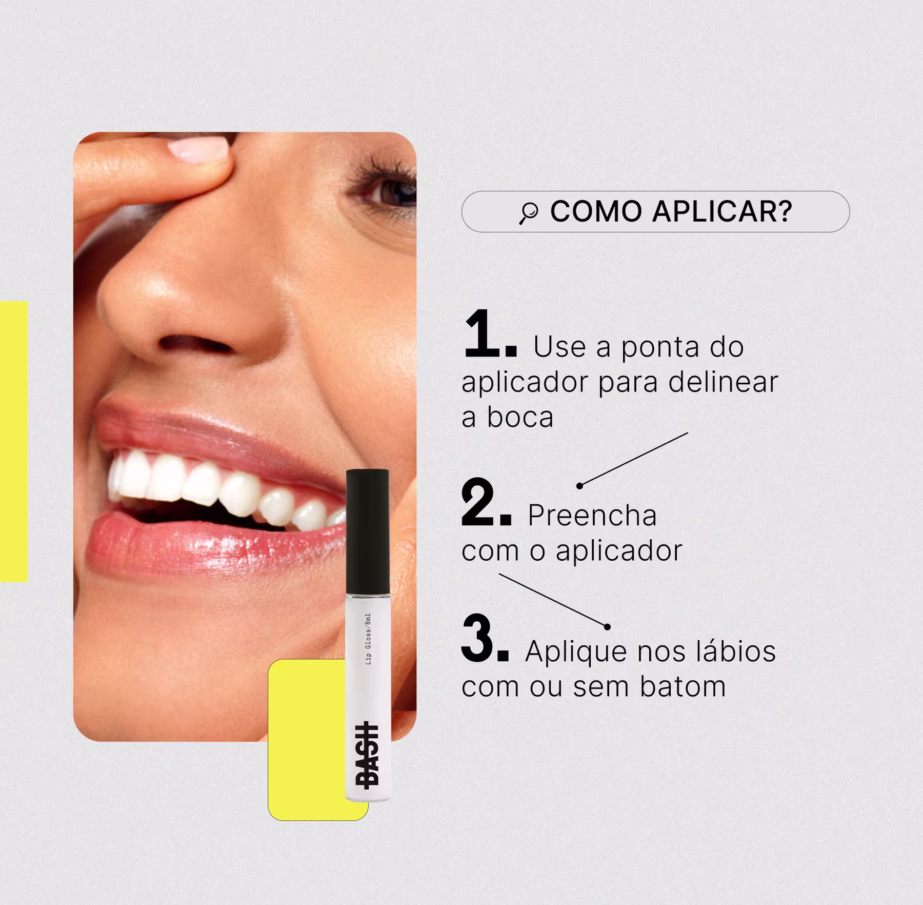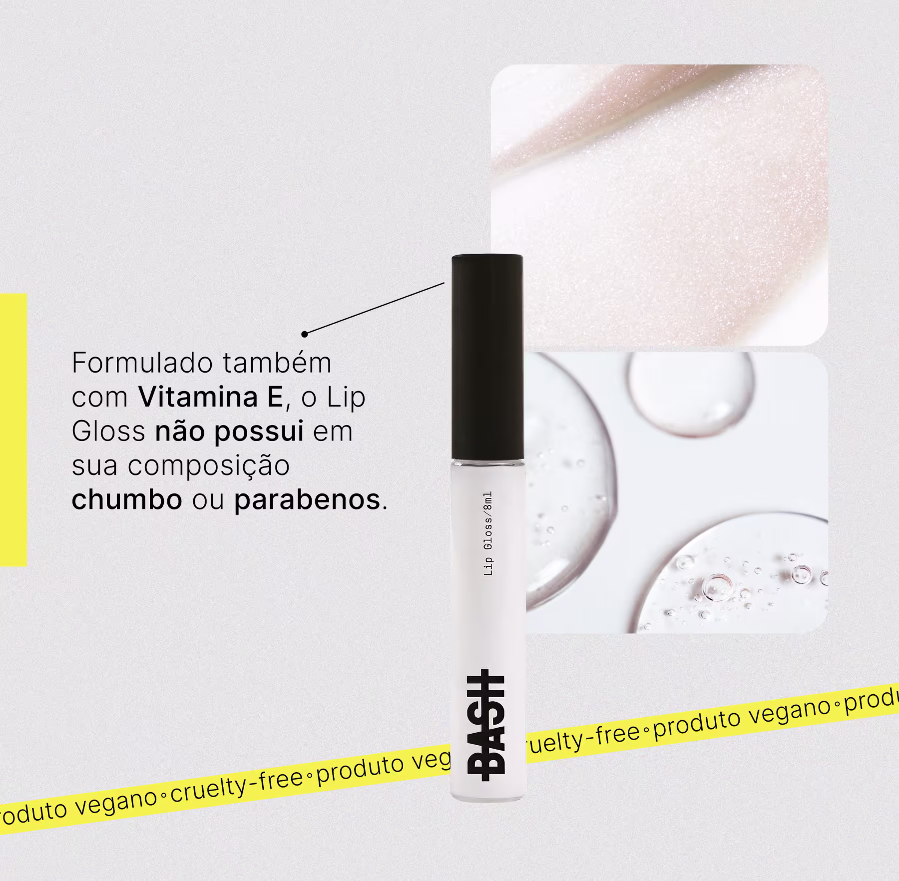 O Lip Gloss BASH Beauty possui fórmula super hidratante, enriquecida com Ácido Hialurônico e Vitamina E, proporcionando assim lábios hidratados, firmes e com a textura suave. O lip gloss desliza suavemente, proporcionando um acabamento luminoso e confortável. Sinta-se poderosa e confiante com um toque de brilho que realça sua beleza natural.