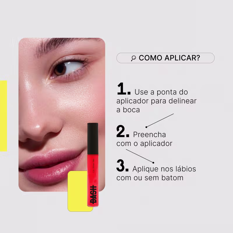 O Lip Gloss BASH Beauty possui fórmula super hidratante, enriquecida com Ácido Hialurônico e Vitamina E, proporcionando assim lábios hidratados, firmes e com a textura suave. O lip gloss desliza suavemente, proporcionando um acabamento luminoso e confortável. Sinta-se poderosa e confiante com um toque de brilho que realça sua beleza natural.