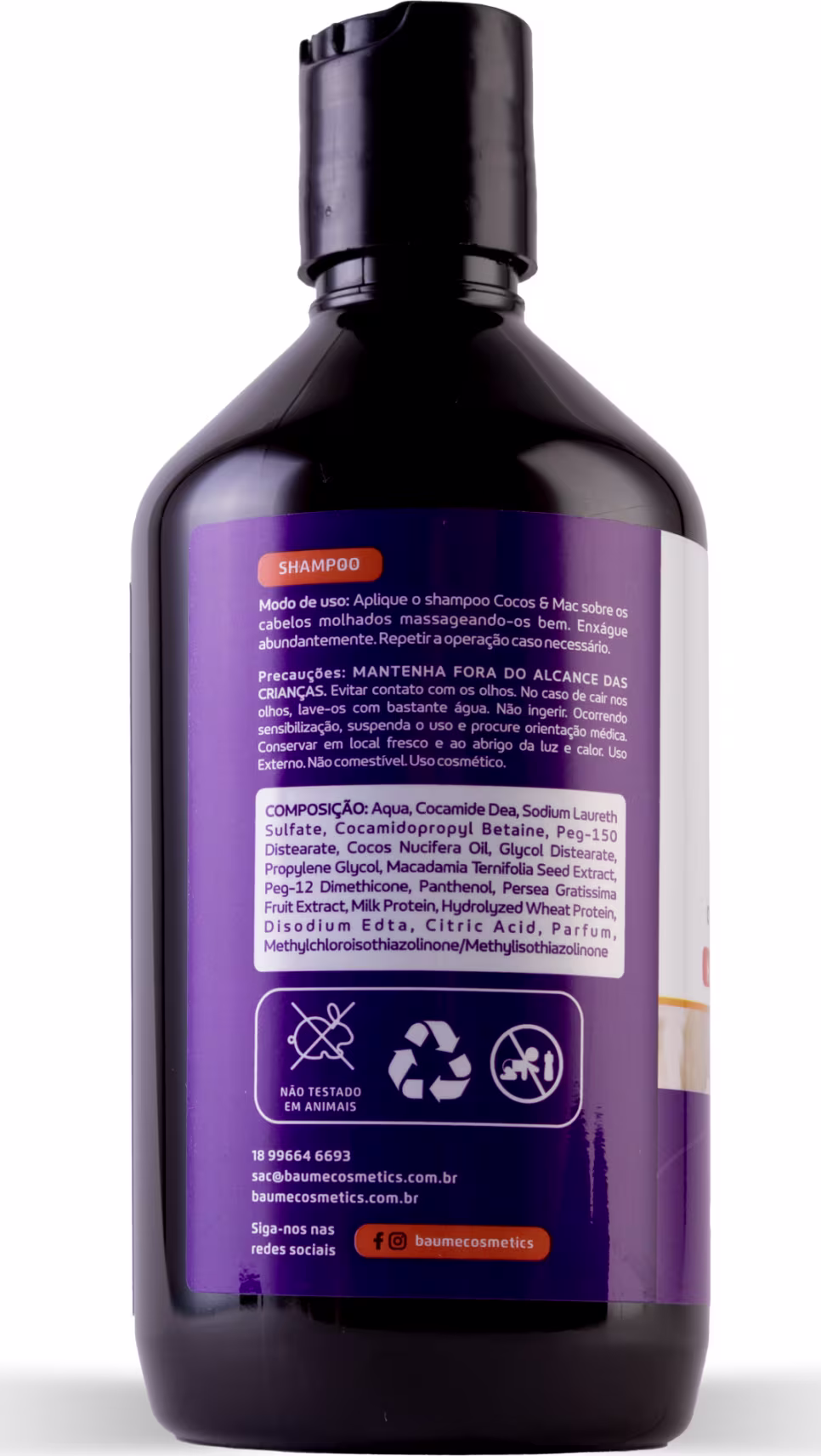Shampoo nutritivo. Baume Cocos & Mac foi desenvolvido para todos os cabelos que necessitam de hidratação e nutrição extra nos cuidados capilares diários.