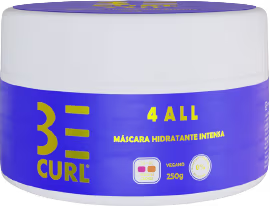 Máscara capilar hidratante para cachos de todas as curvaturas. Be Curl 4All combate o frizz e a quebra dos fios.