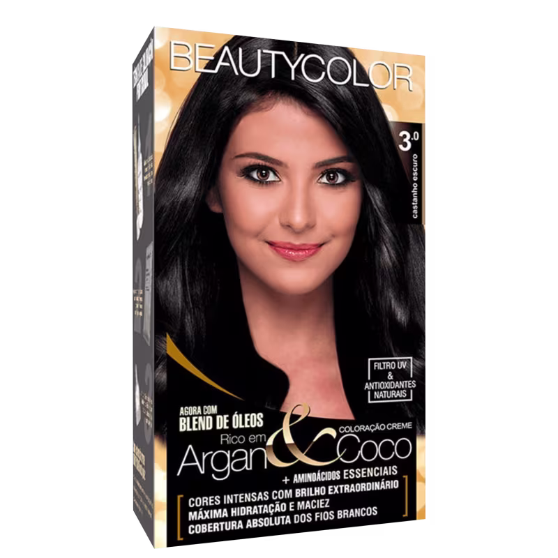 A Coloração BeautyColor oferece cobertura absoluta dos fios brancos e resultado duradouro. Sua fórmula com Complexo Hidranutritivo rico em aminoácidos essenciais e proteínas vegetais associados a um blend de óleos nutritivos, que são ativos hidratante que combinados repõem componentes essenciais como os lipídios naturais, restaurando a fibra capilar e restaurando o equilíbrio hídrico nos fios.
