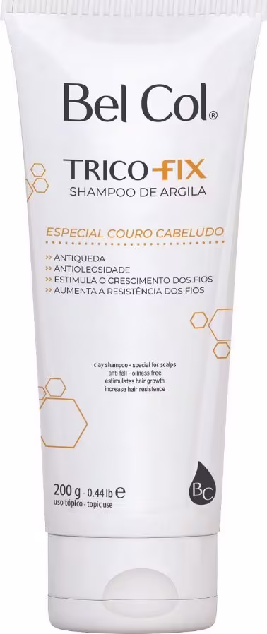 Shampoo antiqueda. Bel Col Trico-Fix fortalece da raiz às pontas, deixando os fios mais fortes, resistentes e brilhantes.