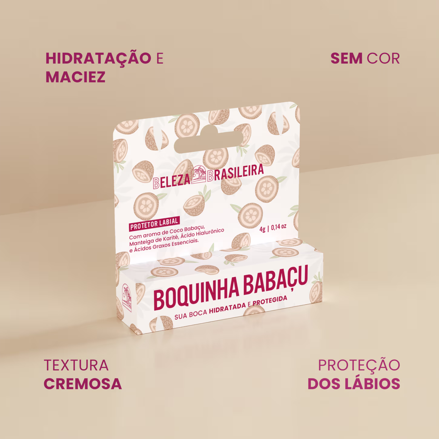 O Protetor Labial Beleza Brasileira Babaçu possui uma fórmula que evita a perda de água natural causadas pelo tempo seco. Além disso, confere um delicioso aroma de Coco Babaçu aos lábios.