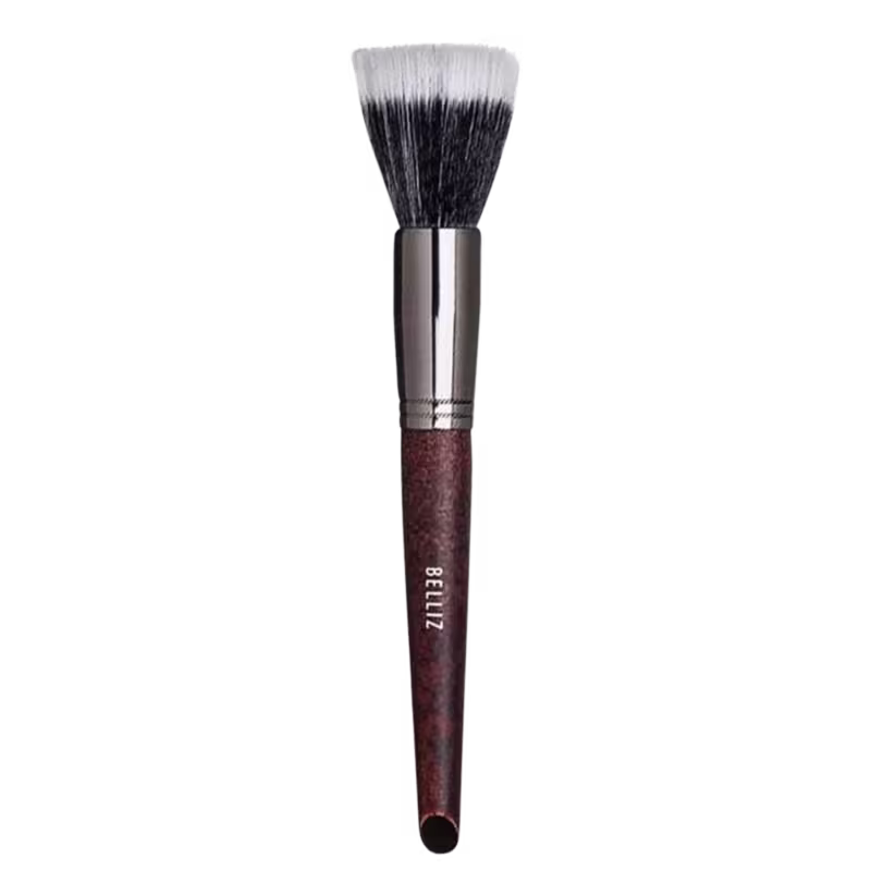 O Pincel para Base Belliz Wood Duo Fiber 1780 possui cabo 100% madeira e cerdas sintéticas de alta qualidade e extra macias que promovem um desempenho profissional, além de poder ser utilizado em aplicação de pós faciais soltos e compactos, e também de blush.