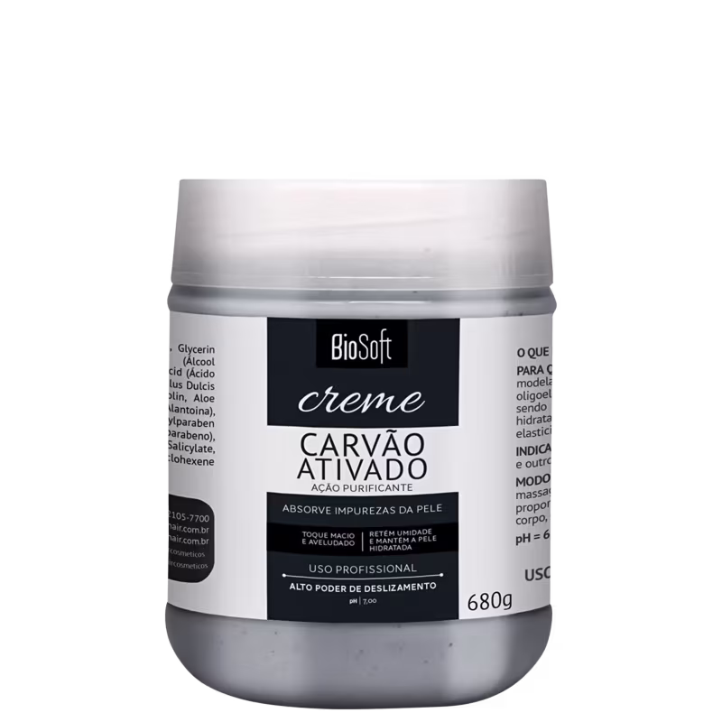 O Creme de Massagem Corporal Bio Soft Carvão Ativado tem fórmula composta predominantemente por Carvão Ativado que purifica a pele, absorve as impurezas e controla a oleosidade excessiva. Além de outros benefícios, o creme tem alto poder de deslizamento, ainda auxilia na retenção da umidade da pele e hidrata.