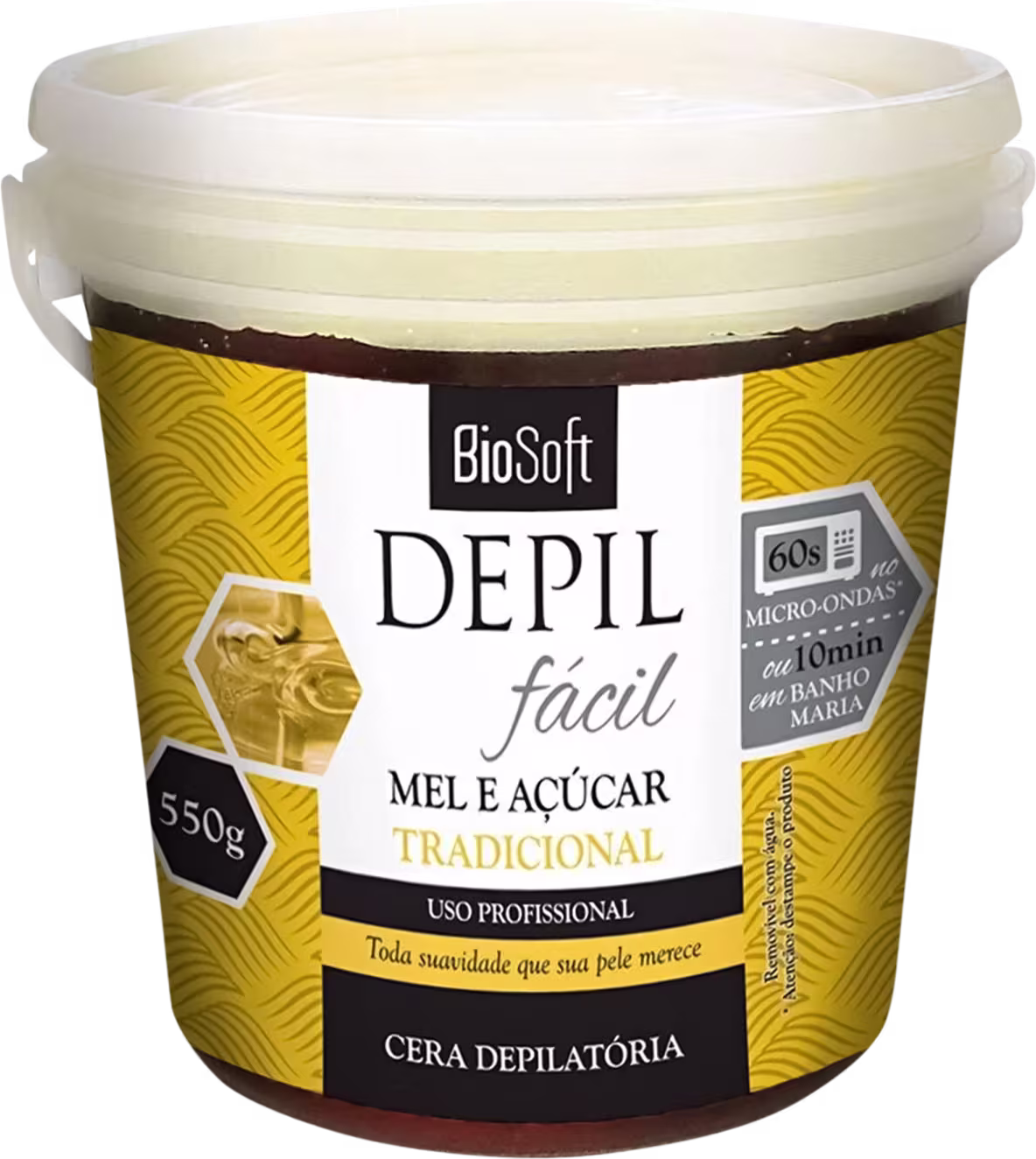 Cera Depilatória. Bio Soft Depil Fácil Mel e Açúcar Tradicional possui ativos naturais que deixam a pele macia e hidratada mesmo após a depilação.