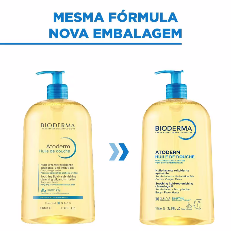 O Óleo de Banho Bioderma Atoderm Hiule de Douche conta com ingredientes ativos e moléculas puras que, em sua maioria, já estão presentes naturalmente na pele. Com fórmula inteligente e exclusiva, composta por Biolipídios Vegetais (coco e éster de girassol), Niacinamida e a patente Skin Barrier Therapy™, o produto combate a sensação de repuxamento, fortalece a resistência cutânea e reestrutura a barreira de proteção.