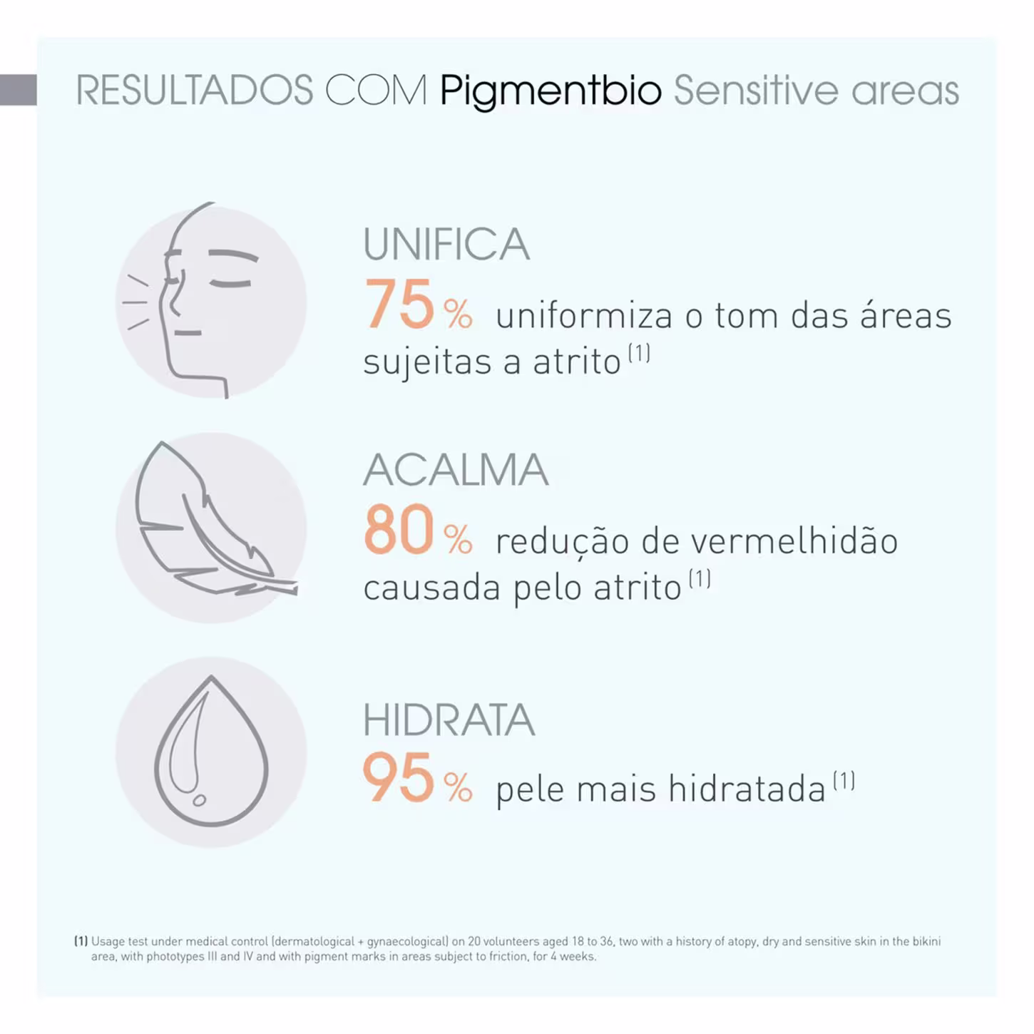 Além disso, Pigmentbio Sensitive Areas promove toque macio e acetinado, com hidratação por até 8 horas e sensação de conforto imediato. Livre de perfumes e parabenos.