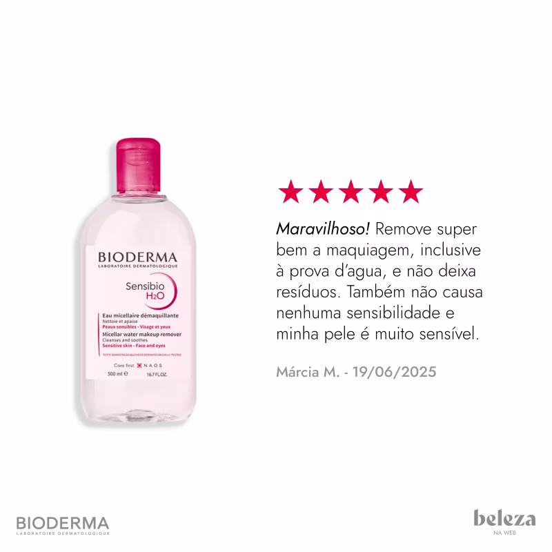 Água micelar calmante para todos os tipos de peles, até as mais sensíveis. Bioderma Sensibio H2O remove maquiagem e impurezas enquanto acalma e preserva a película de proteção natural cutânea, além de ajudar a reconstruí-la.