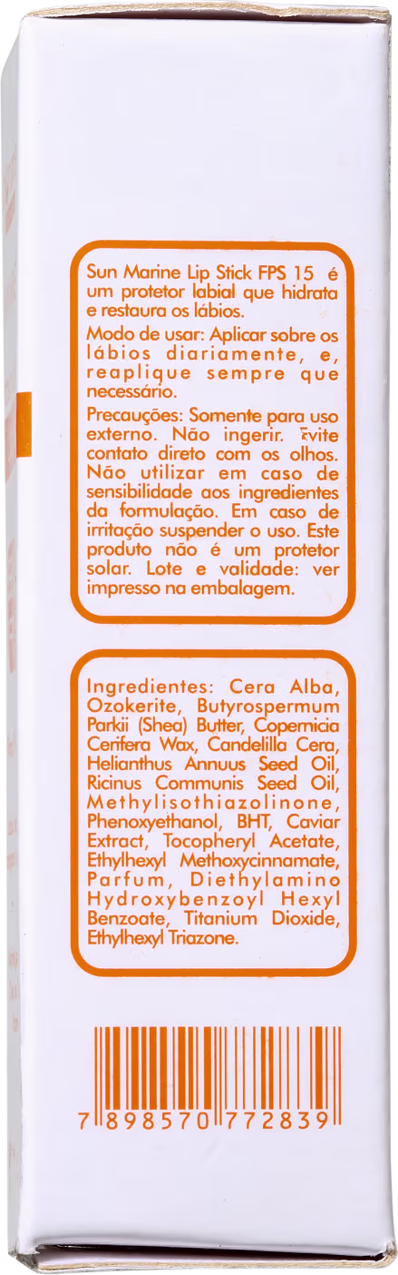 O Protetor Labial Sun Marine BB Lipstick FPS 15, da Biomarine, impede com que a pele perca a umidade e forme rachaduras. Seus lábios ganham hidratação enquanto ficam protegidos dos raios UV.