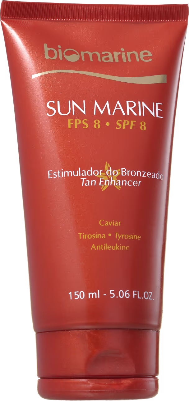 Bronzeador para todos os tipos de pele. Biomarine Sun Marine Estimulador de Bronzeado FPS 8 aumenta a produção de melanina do corpo para um bronzeado mais rápido e duradouro.