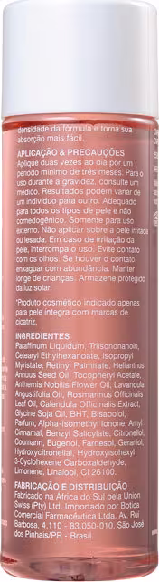 Óleo de tratamento. Bio-Oil melhora a aparência de estrias, cicatrizes e tons desiguais, por hiperpigmentação, e sinais da idade, como linhas de expressão e rugas.