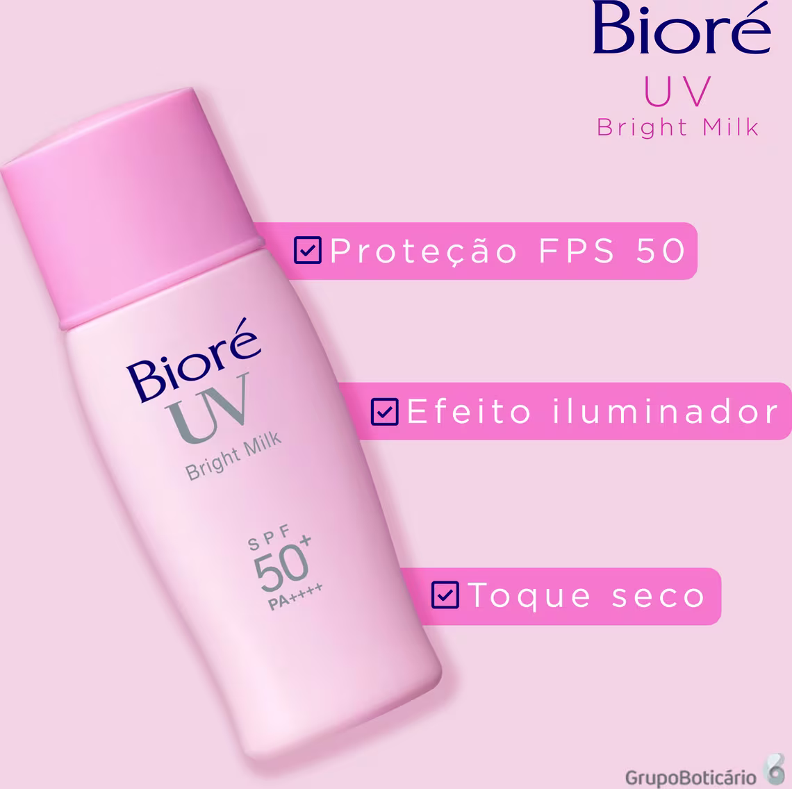 Bioré UV Perfect Bright Milk FPS50 é uma emulsão leve, com finas partículas bloqueadoras, lançada em 2015 e reformulada em 2019. A formulação é tecnológica, e diferentemente dos produtos que utilizam a coloração vermelha a fim de ruborizar o rosto, ilumina levemente a pele através da absorção de porções de luz, por isso é ideal para ser utilizada antes da aplicação de maquiagem e hidratantes e pode ser aplicado em todos os tons de pele. O produto ainda conta com Ácido Hialurônico e Glicerina na formulação, não é comedogênico e não contém fragrâncias.