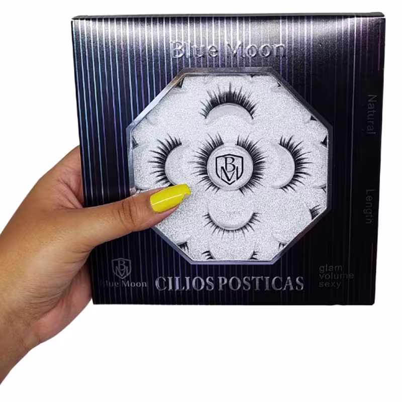 Cílios postiços pretos. Blue Moon BM1014-1 conferem um olhar mais expressivo e marcante de forma prática e rápida.