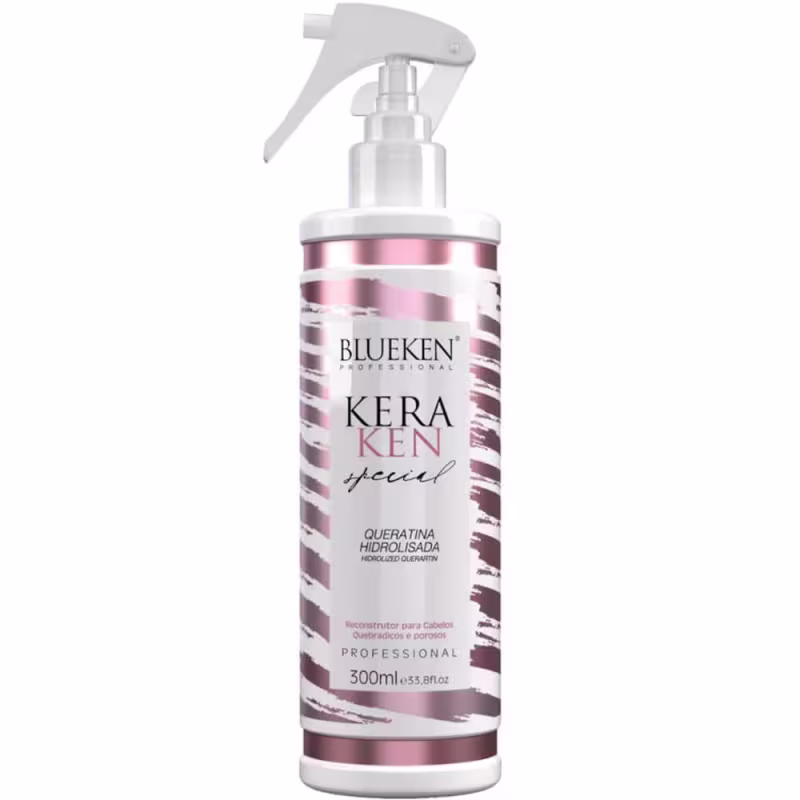 Queratina hidrolisada para cabelos danificados. Blueken Keraken Special aumenta a resistência dos fios e elimina as pontas duplas.
