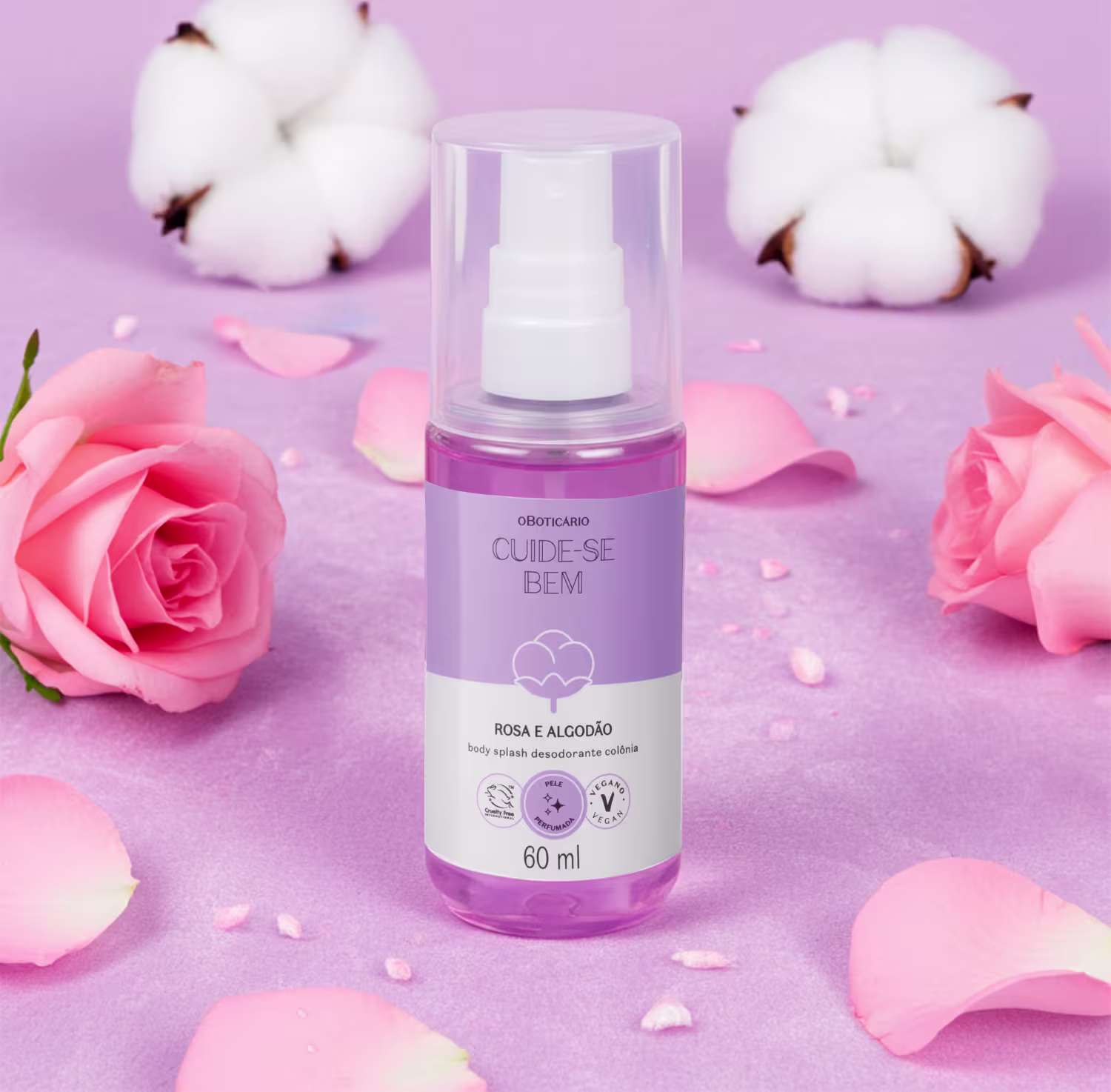O Body Splash Desodorante Colônia Cuide-se Bem Rosa e Algodão é ideal para uma rotina mais leve e perfumada!