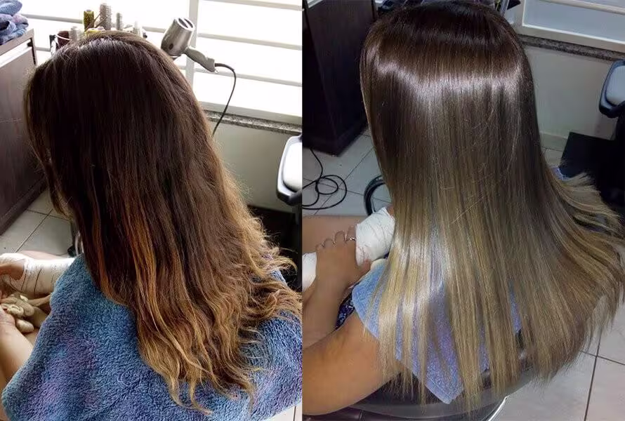 Deixa o cabelo supeeeer macio, com brilho, nunca vi meu cabelo assim, o cheiro é agradável, não arde os olhos, passei o produto, retirei o excesso com toalha e pranchei com o produto nos cabelos, fiquei maravilhada, meu cabelo era igual a bandido, se não estava preso, estava armado, kkkk.... Agora só lavo e deixo secar naturalmente, deixou o cabelo alinhado, em algumas partes que caprichei na prancha até alisou.