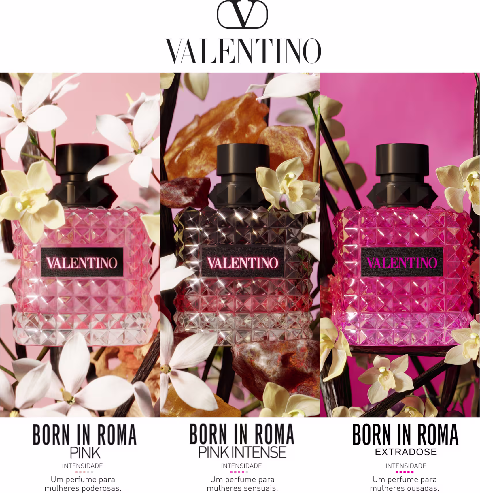 Valentino é sinônimo de sofisticação, bom gosto e elegância. Diretamente do mundo das celebridades, seus exclusivos e renomados produtos foram concebidos para uma mulher elegante e cheia de vida. Inspirada por suas roupas de alta costura e pelo estilo de vida, a mulher Valentino vai além do desejo de fazer uma declaração, ela quer se destacar e aproveitar a vida ao máximo.