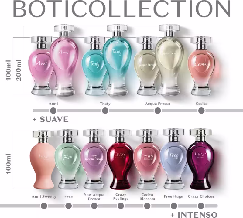 A linha Boticollection Acqua Fresca foi lançada em 1979 e deu início à história das fragrâncias do Boticário, representando um marco no mercado brasileiro de perfumaria. Lançada no formato de ânfora, tornou- se um ícone da marca. Traz uma fragrância que combina notas cítricas, lavanda e madeira.