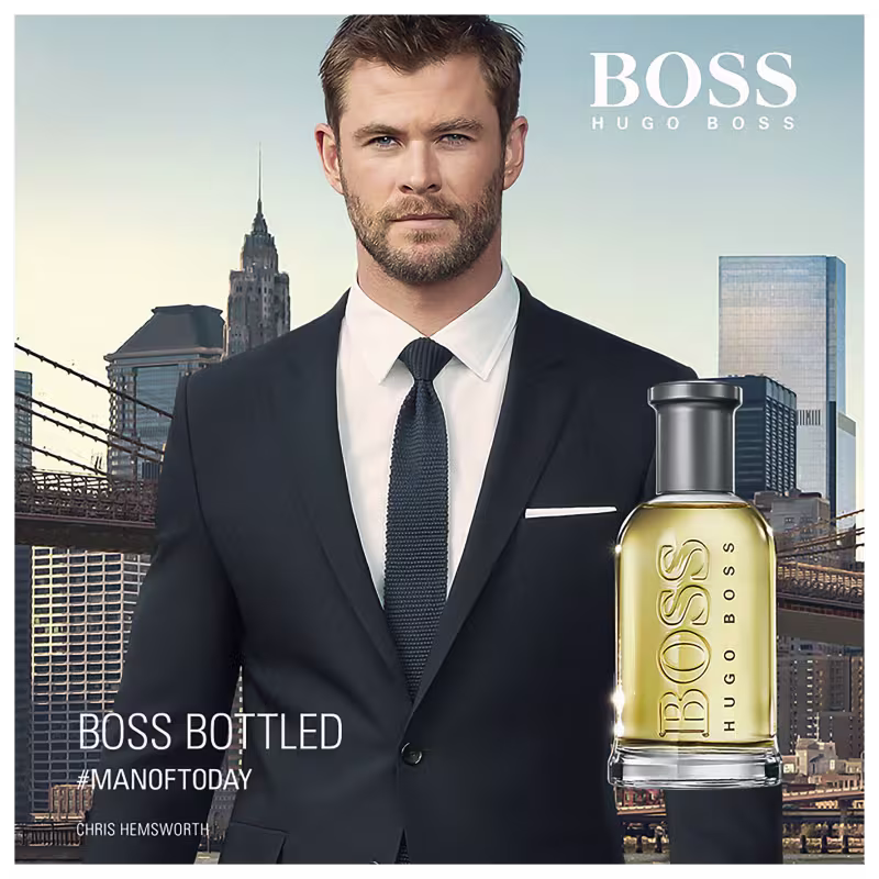 A marca alemã Hugo Boss é sinônimo de elegância desde a sua criação, em 1923. Suas roupas e acessórios vanguardistas, de influência predominantemente europeia, agradam homens e mulheres de todo o mundo. Hugo Boss vem construindo sua sólida imagem no mercado brasileiro através de vários produtos de sucesso para o público feminino e masculino, principalmente seus perfumes.