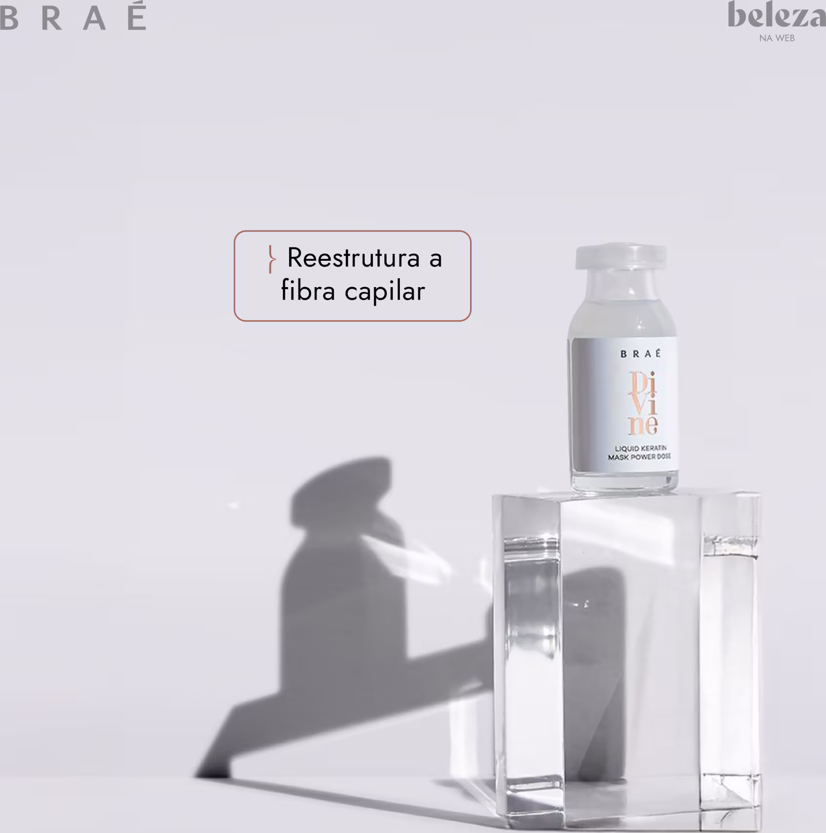 Ampola de tratamento concentrado para cabelos danificados. BRAÉ Divine Power Dose promove reparação, hidratação e brilho intenso de maneira rápida e com ação imediata.