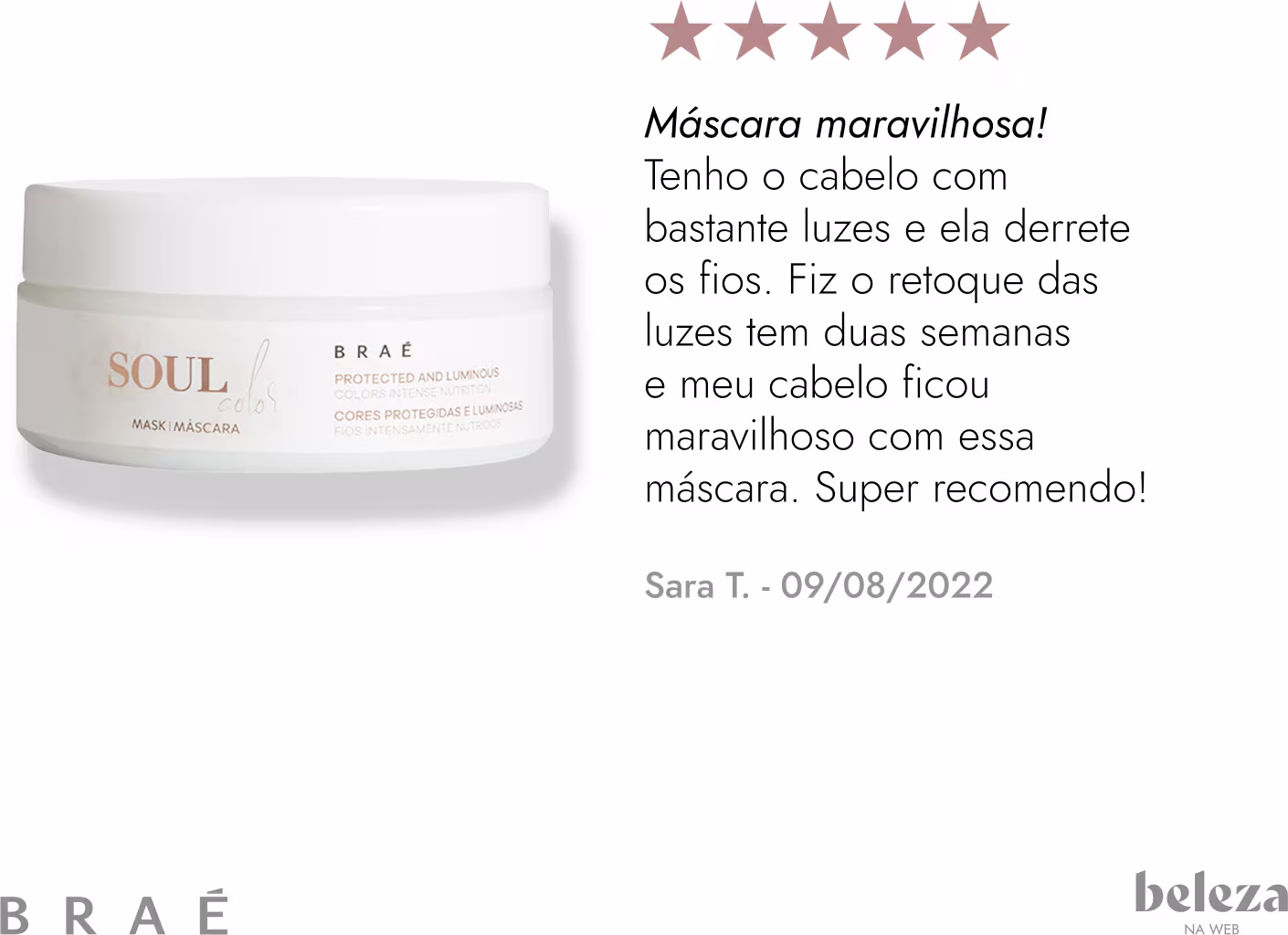Máscara para cabelos coloridos ou com mechas. BRAÉ Soul Color promove nutrição e hidratação extrema para cores mais reluzentes e duradouras.
