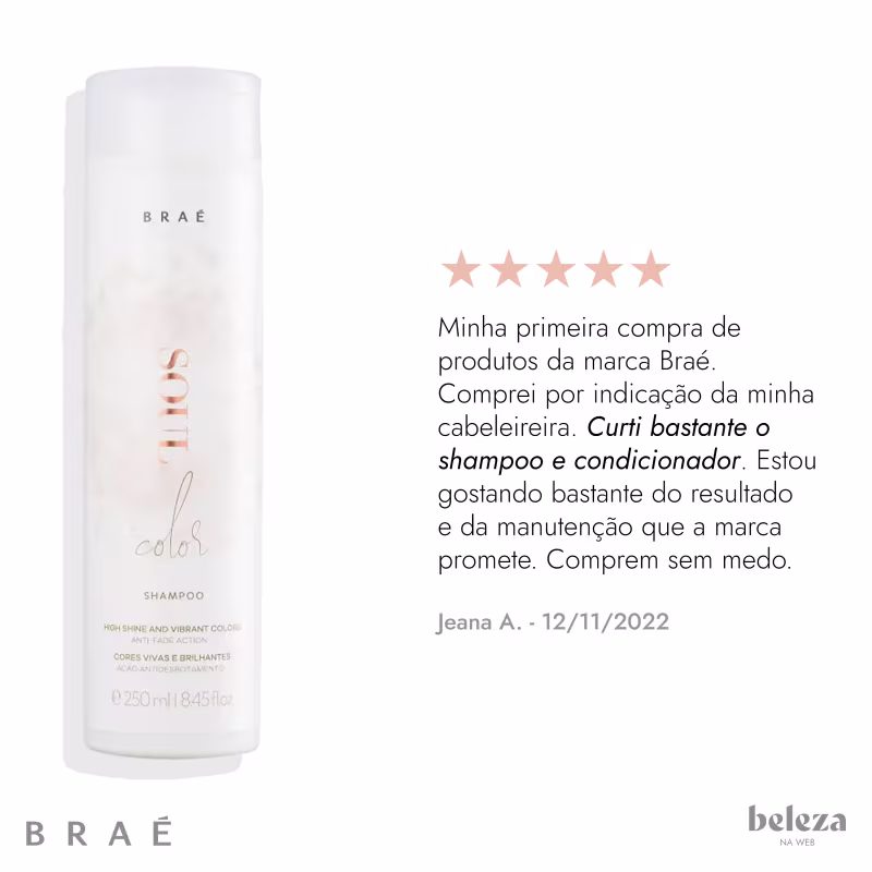 Shampoo Braé Soul Color: cuidado nutritivo e antioxidante para uma cor vibrante e brilhante por mais tempo. Melhores Shampoos Braé na BLZ. Ver mais ❯