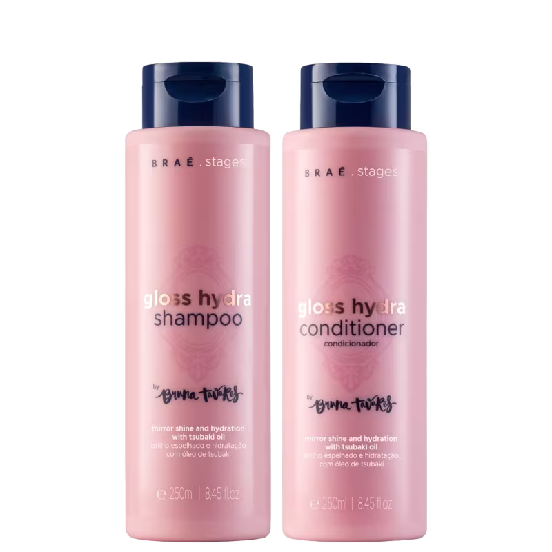 Shampoo hidratante. Braé Stages Gloss Hydra by Bruna Tavares alinha cutículas, realça cor e proporciona 4x mais brilho, com óleo de Tsubaki e tecnologia BT Bio Shine. Este shampoo é indicado para todos os tipos de cabelo, especialmente para fios opacos, ressecados ou com necessidade de restauração capilar.