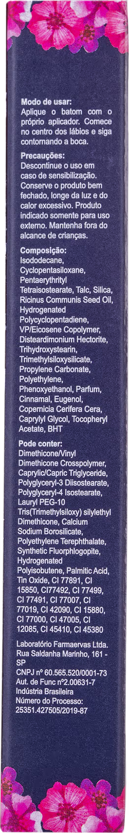 Batom com acabamento matte. Bruna Tavares BT Lips possui fórmula cremosa e sedosa, com finalização aveludada e confortável.