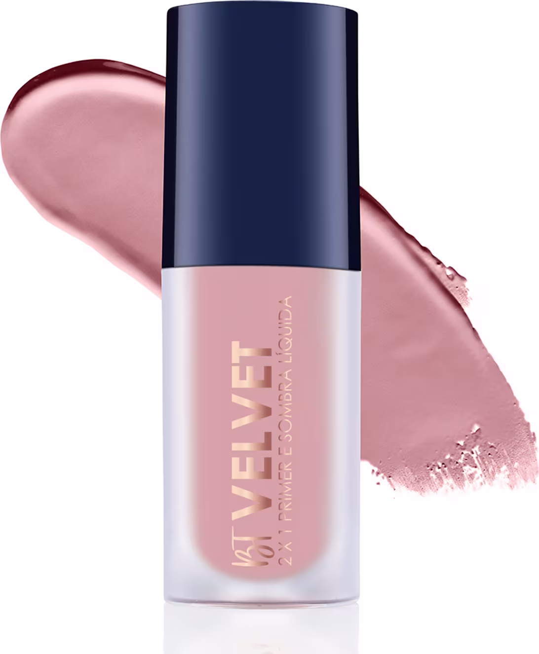Sombra líquida multifuncional. Bruna Tavares BT Velvet 2x1 pode ser usada como primer e sombra, destacando o olhar com cores bem pigmentadas e de secagem rápida.