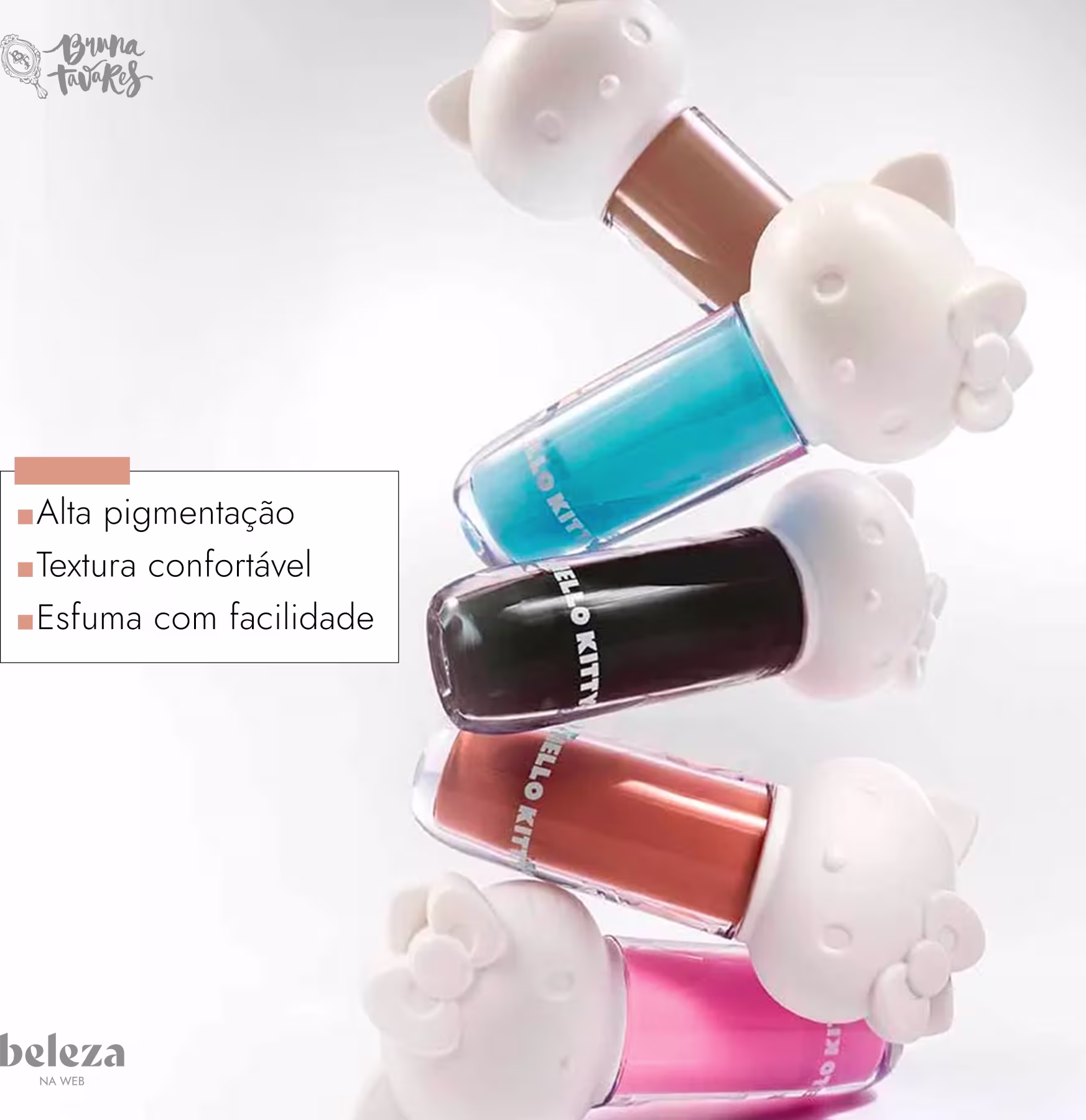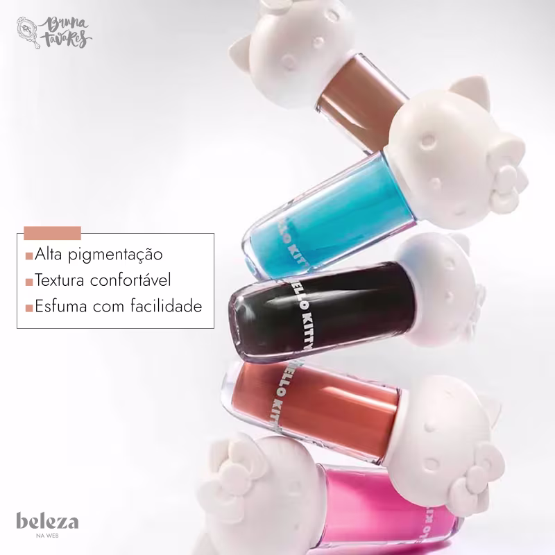 A Sombra Líquida Bruna Tavares Hello Kitty conquista corações com sua proposta irresistível: alto desempenho e multifuncionalidade em um único produto. Sua fórmula inovadora entrega alta pigmentação e uma textura confortável, que desliza facilmente na pele, proporcionando um esfumado impecável. Com cores vibrantes, a coleção desperta memórias afetivas e convida a um mergulho no universo encantador da Hello Kitty. Experimente todas as cores disponíveis e crie looks de arrasar!