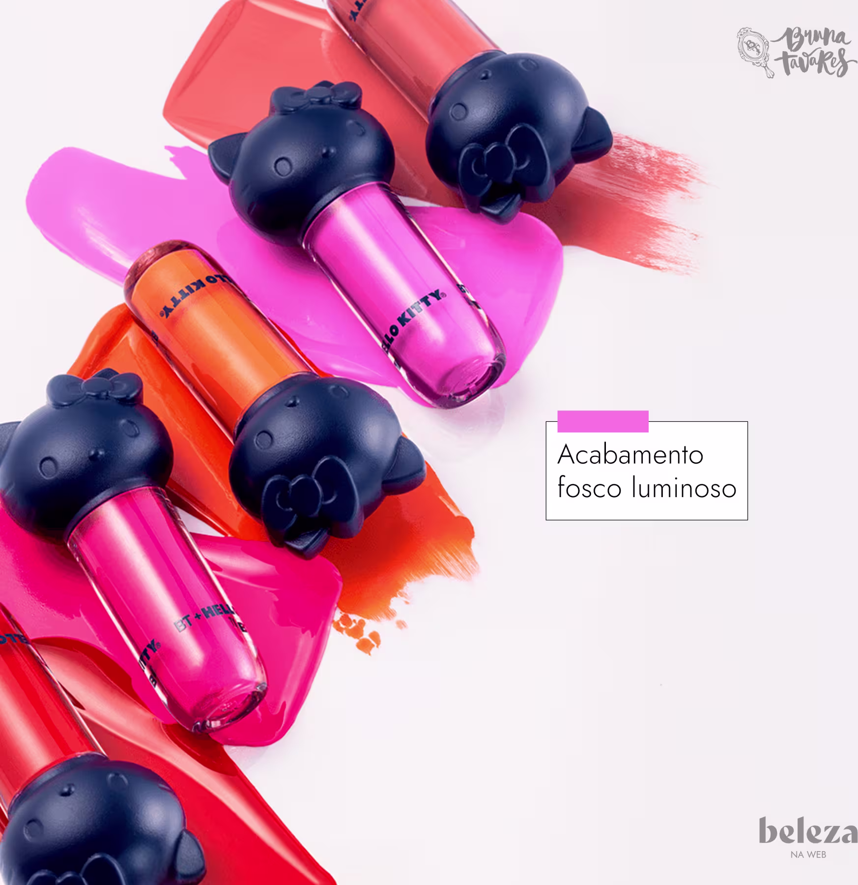 Blush Líquido Bruna Tavares Hello Kitty: acabamento fosco luminoso, pode ser usado como batom ou sombra. Melhores maquiagens Bruna Tavares na BLZ. Ver mais ❯