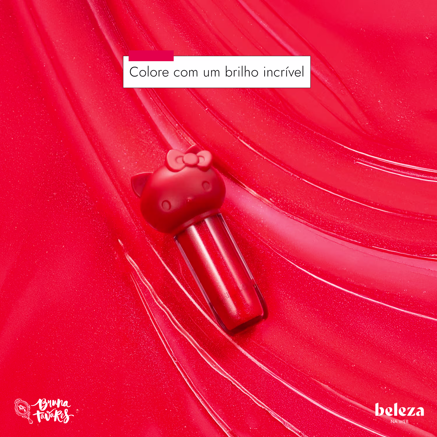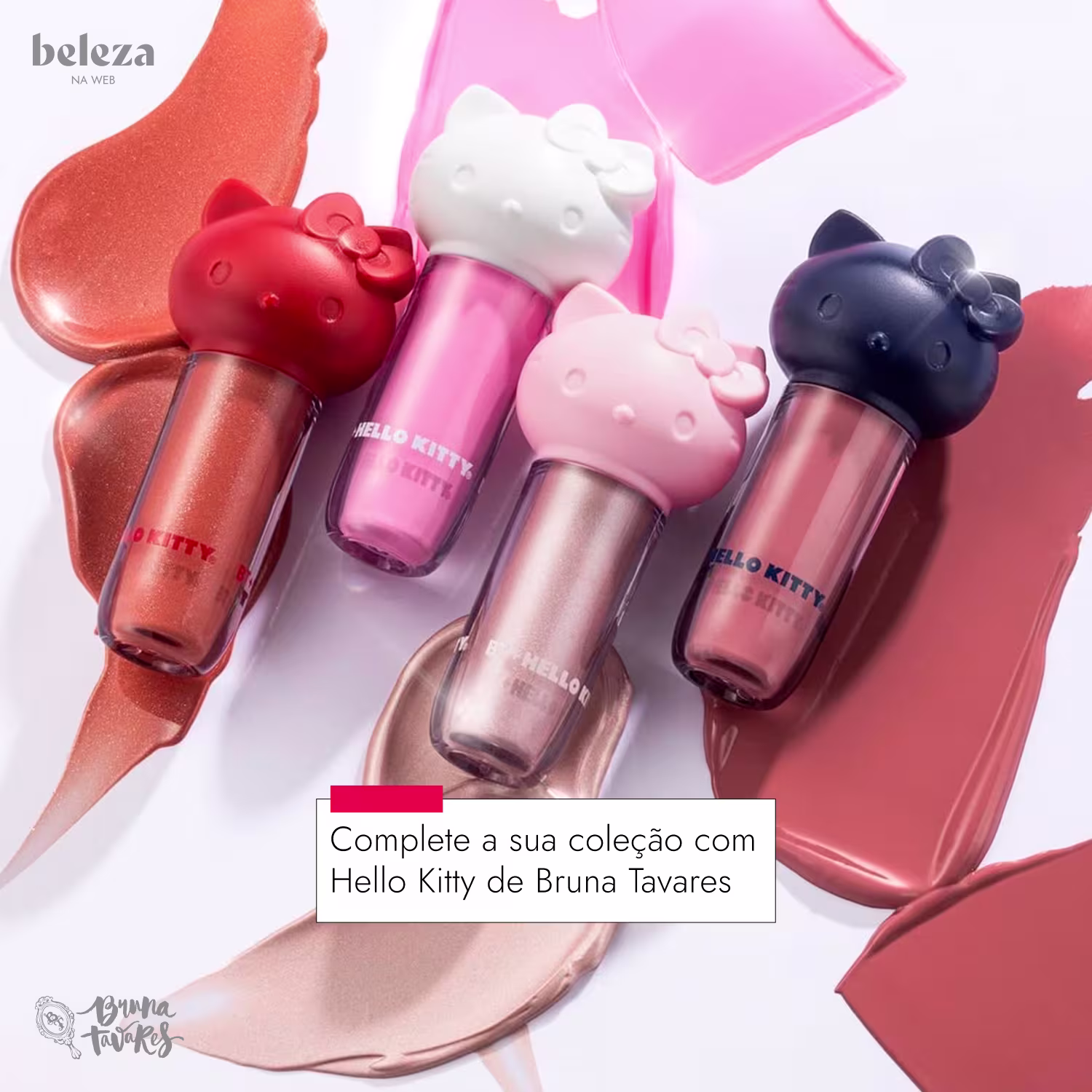 Óleo labial com cor. Bruna Tavares Hello Kitty une o melhor dos dois mundos, proporcionando beleza e cuidado com tons luminosos.
