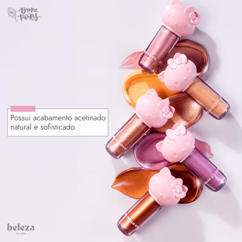 Iluminador líquido acetinado. Bruna Tavares Hello Kitty Liquid Glow proporciona um brilho natural e sofisticado, sem parecer artificial.