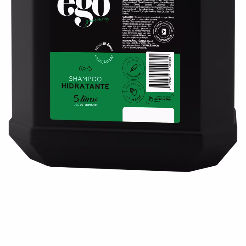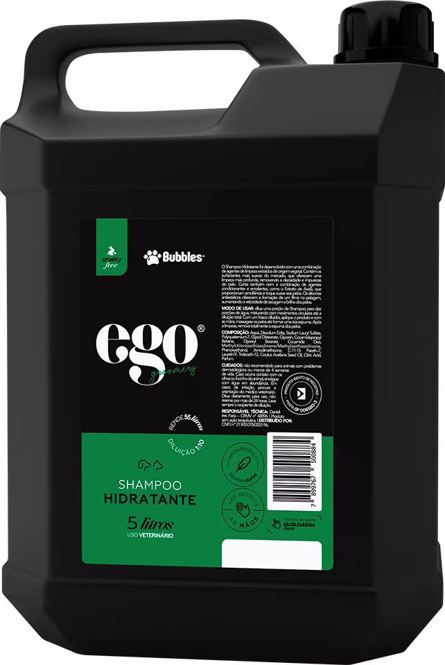O Shampoo Hidratante Bubbles Ego possui uma combinação de agentes condicionantes e emolientes, que proporcionam emoliência e toque suave aos pelos. Além disso, os silicones antiestáticos presentes na fórmula, oferecem formação de um filme na pelagem, aumentando a velocidade de secagem e brilho.