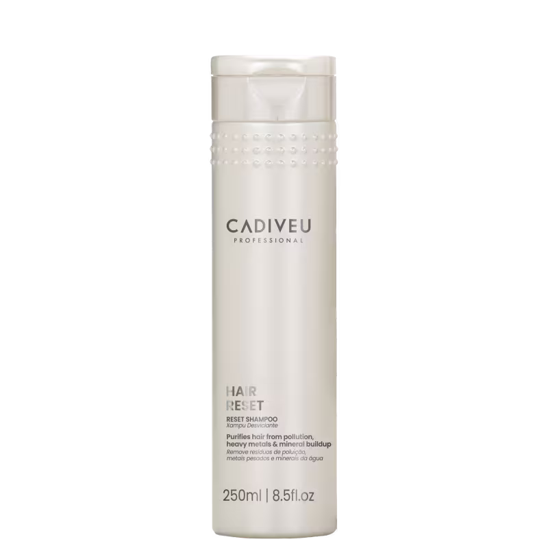 Não sei o CEPShampoo para cabelos com resíduos cosméticos em excesso. Cadiveu Hair Reset purifica o couro cabeludo, trazendo leveza e maciez.