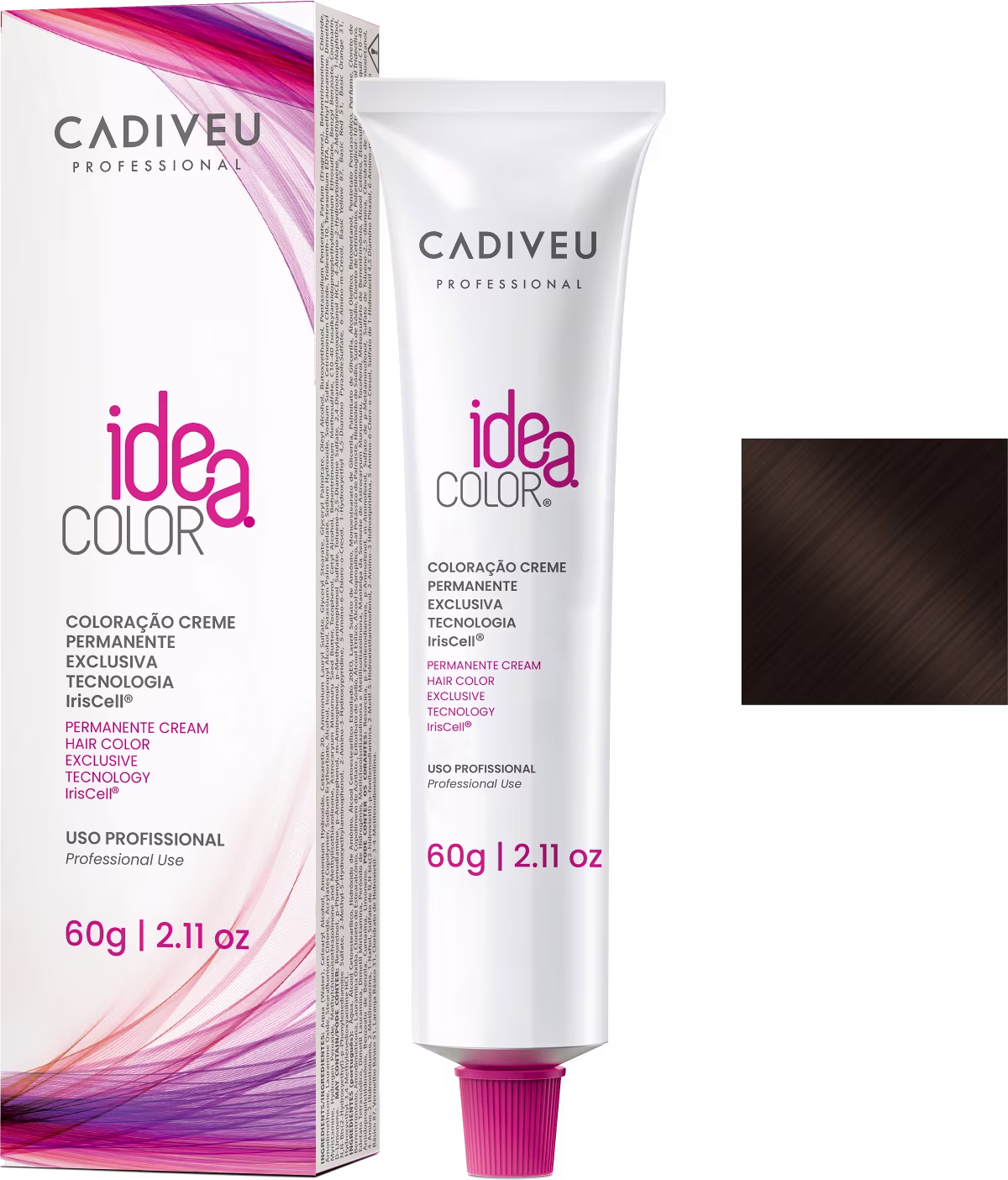 Coloração permanente. Cadiveu Idea Color proporciona cobertura completa dos cabelos brancos, com cor vibrante, resistente ao desbotamento e durabilidade prolongada.