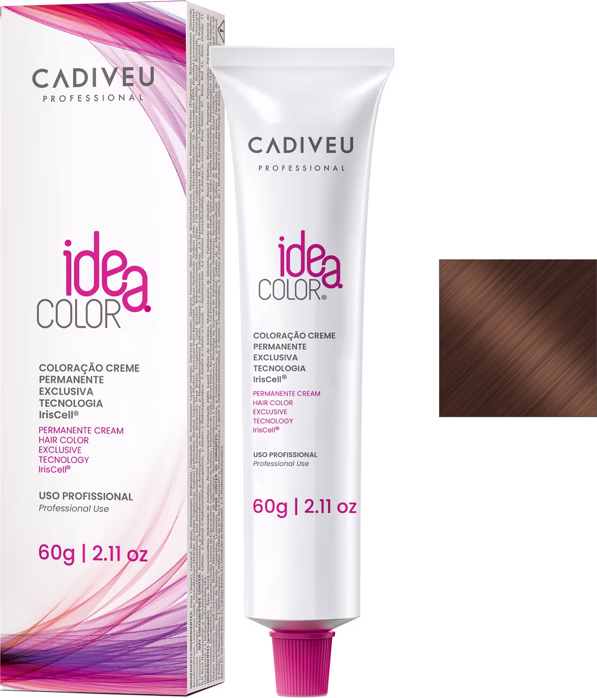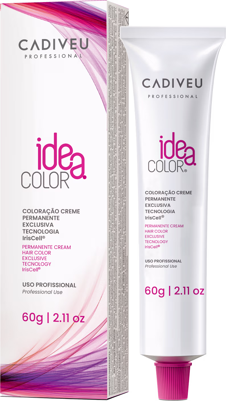 Coloração permanente. Cadiveu Idea Color proporciona cobertura completa dos cabelos brancos, com cor vibrante, resistente ao desbotamento e durabilidade prolongada.