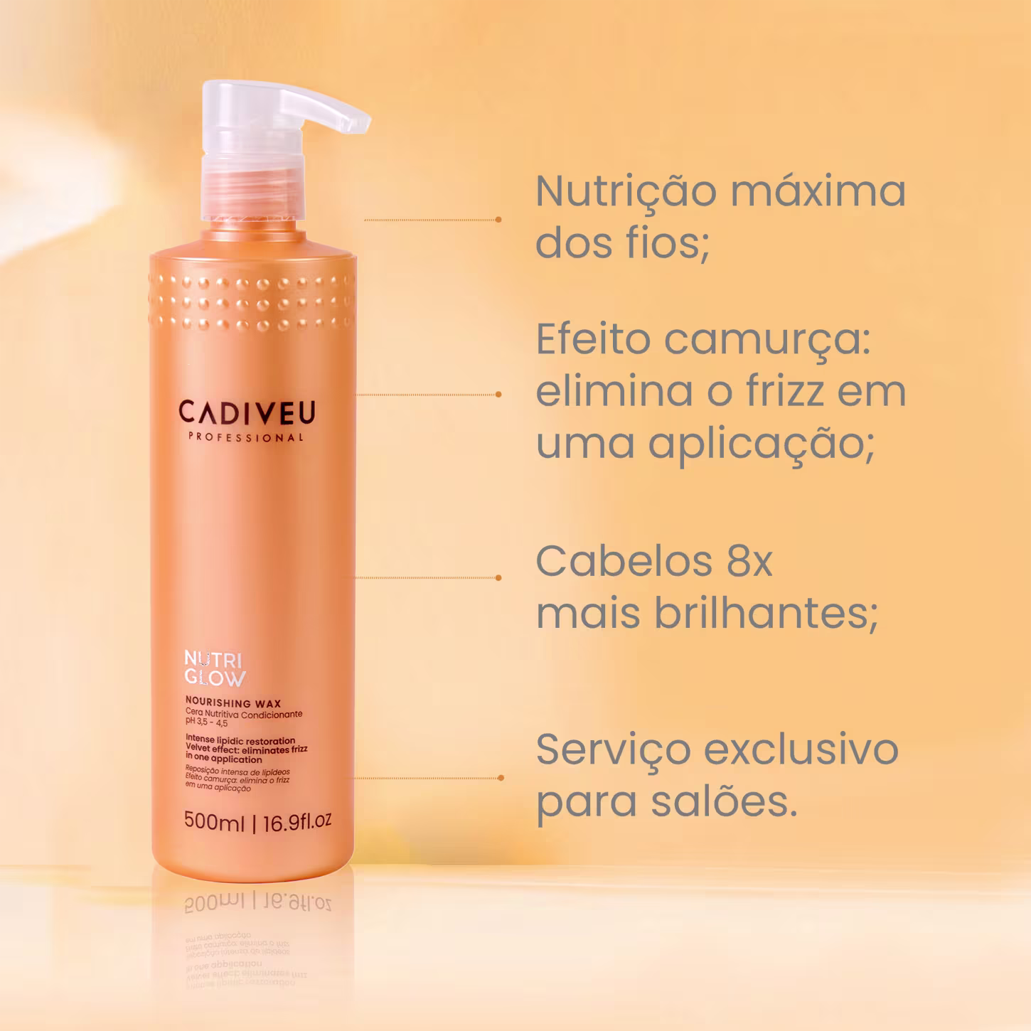 Cera nutritiva. Cadiveu Professional Nutri Glow tratamento profissional que atua na recuperação de diferentes partes da estrutura capilar.