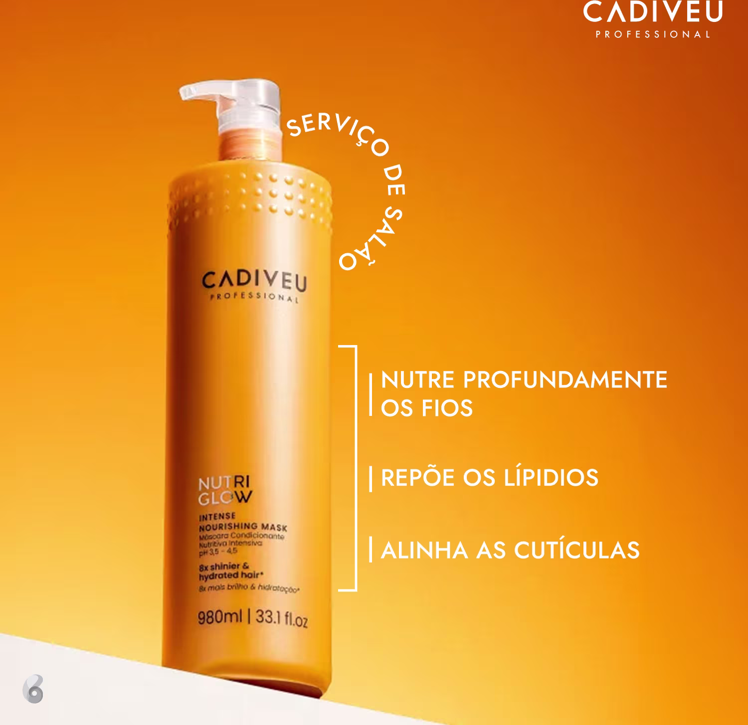 Cera nutritiva. Cadiveu Professional Nutri Glow tratamento profissional que atua na recuperação de diferentes partes da estrutura capilar.