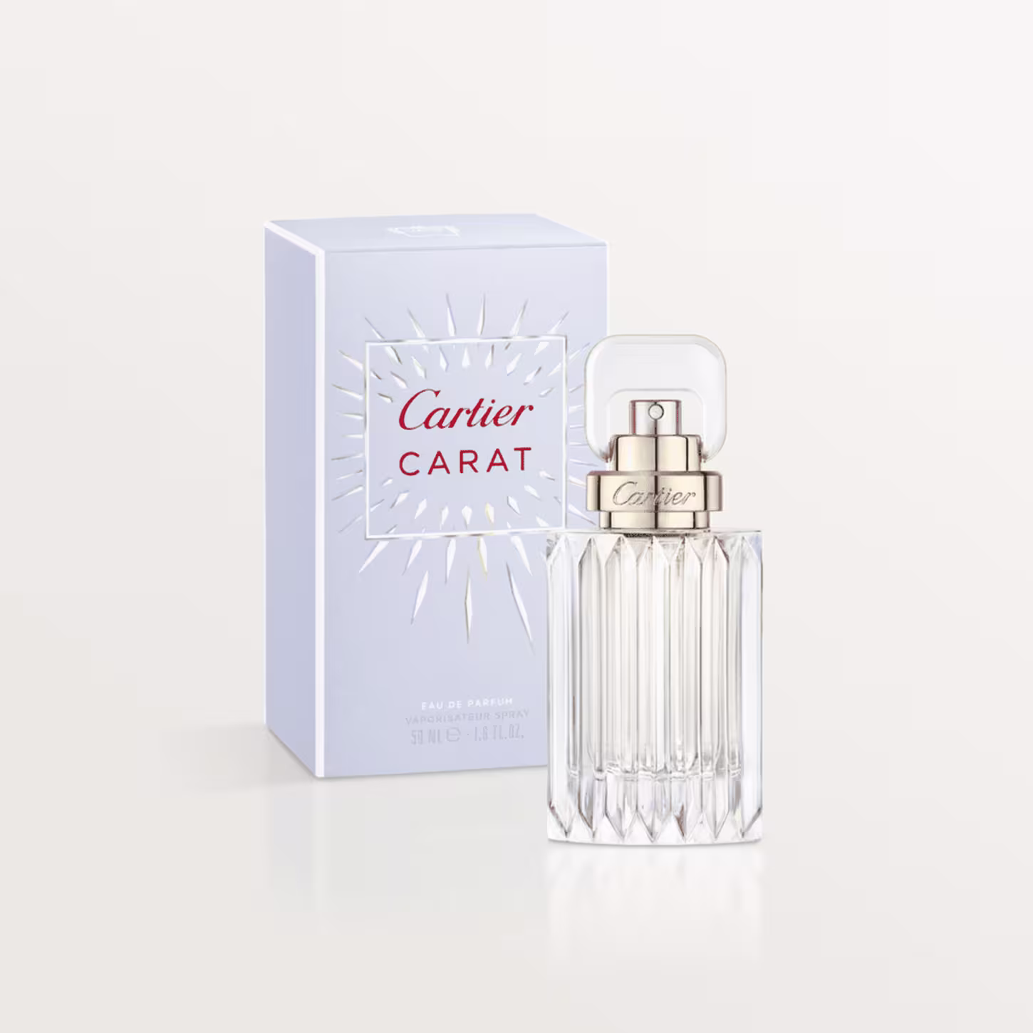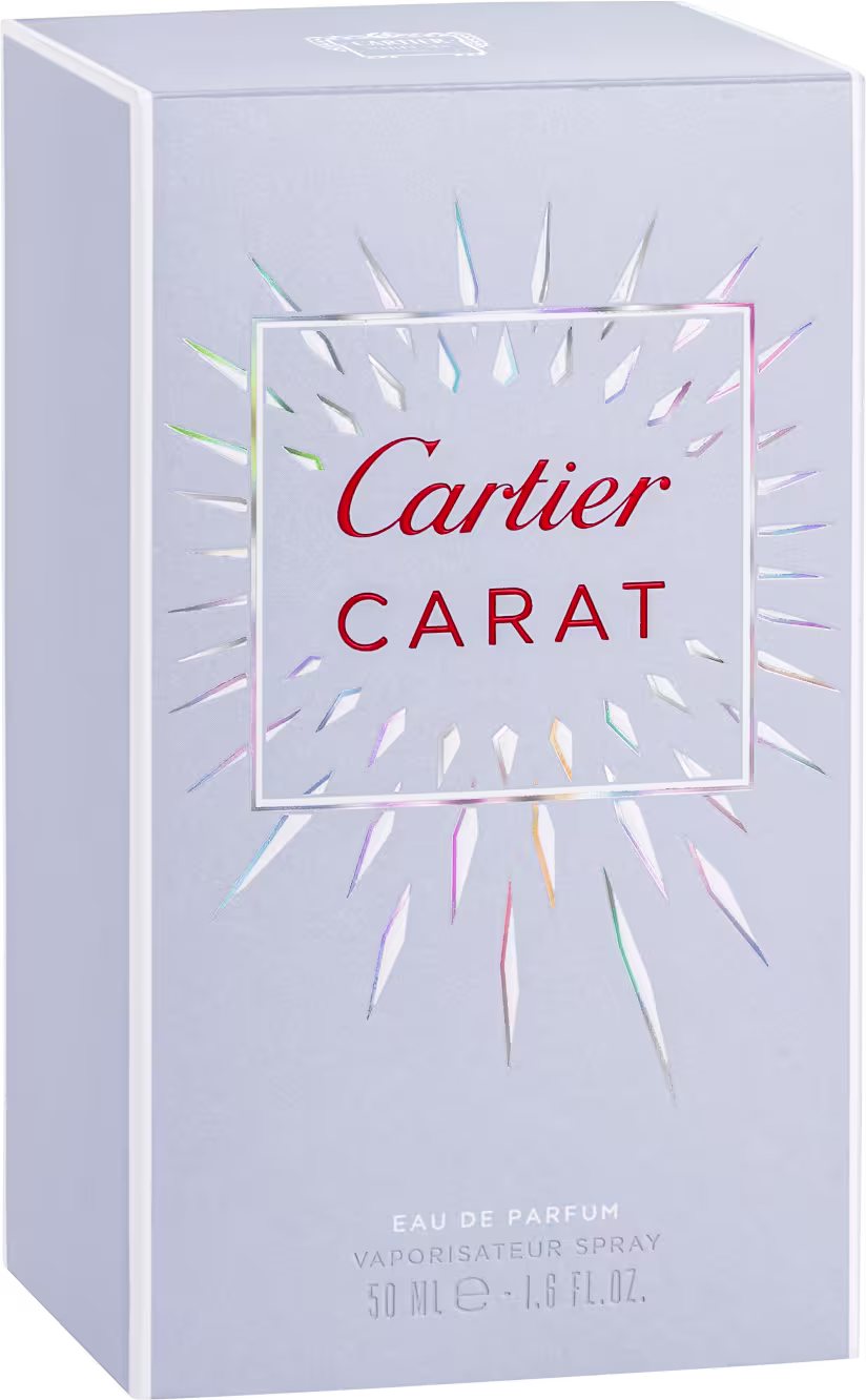 O Perfume Carat, de Cartier, traz um aroma elegantemente criado pela perfumista da Maison Cartier, Mathilde Laurent, com um buquê de fogo, um milhar de pontos de luz, brilhantes e florais. O luxuoso frasco traz as facetas, como um diamante, que captura e fratura a luz numa miríade de cores.