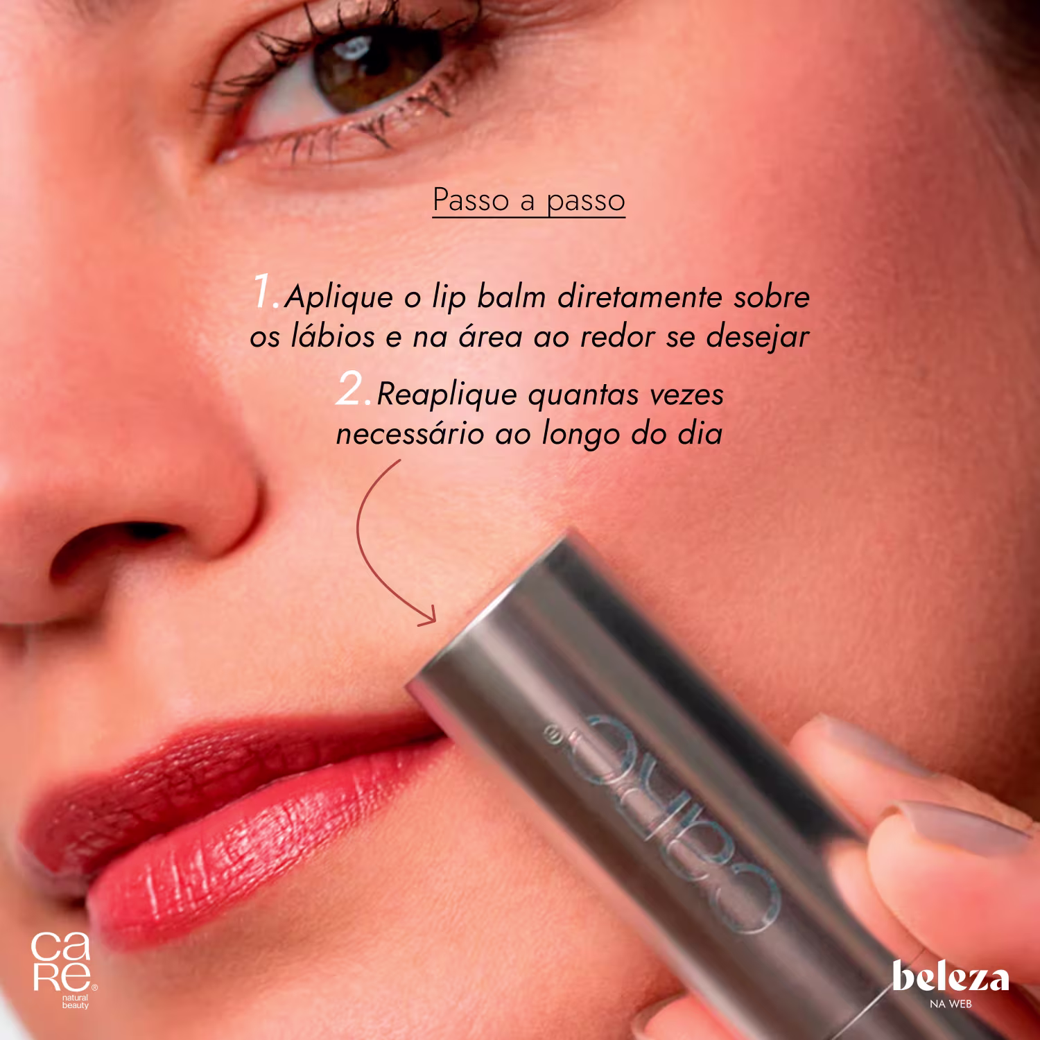 Lip balm. CARE Natural Beauty hidrata, trata e recupera a pele dos lábios, com cobertura média e textura macia.