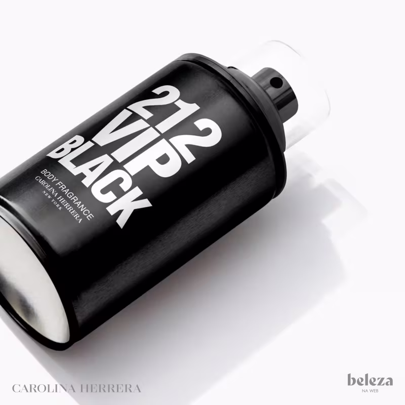 Body spray masculino aromático fougére. Carolina Herrera 212 VIP Men Black Body Fragrance possui fragrância jovem, intensa e inovadora, que protege e perfuma ao mesmo tempo.